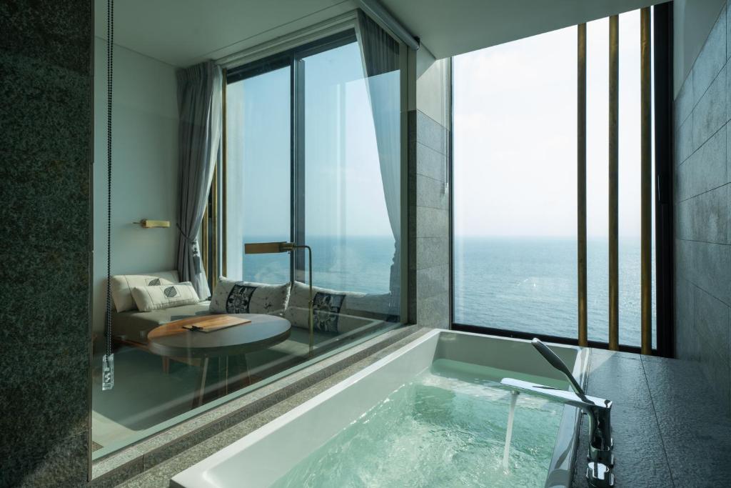 • A rooftop swimming pool with panoramic ocean views