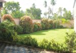The villa is set within a lush garden, offering a peaceful and natural environment.