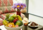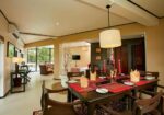 Guests enjoy a mix of rice and curry, seafood dishes, fresh fruits, and tasty desserts. Additionally, vegetarian options are made available upon request. Outdoor dining spaces allow guests to eat while enjoying sunset views.